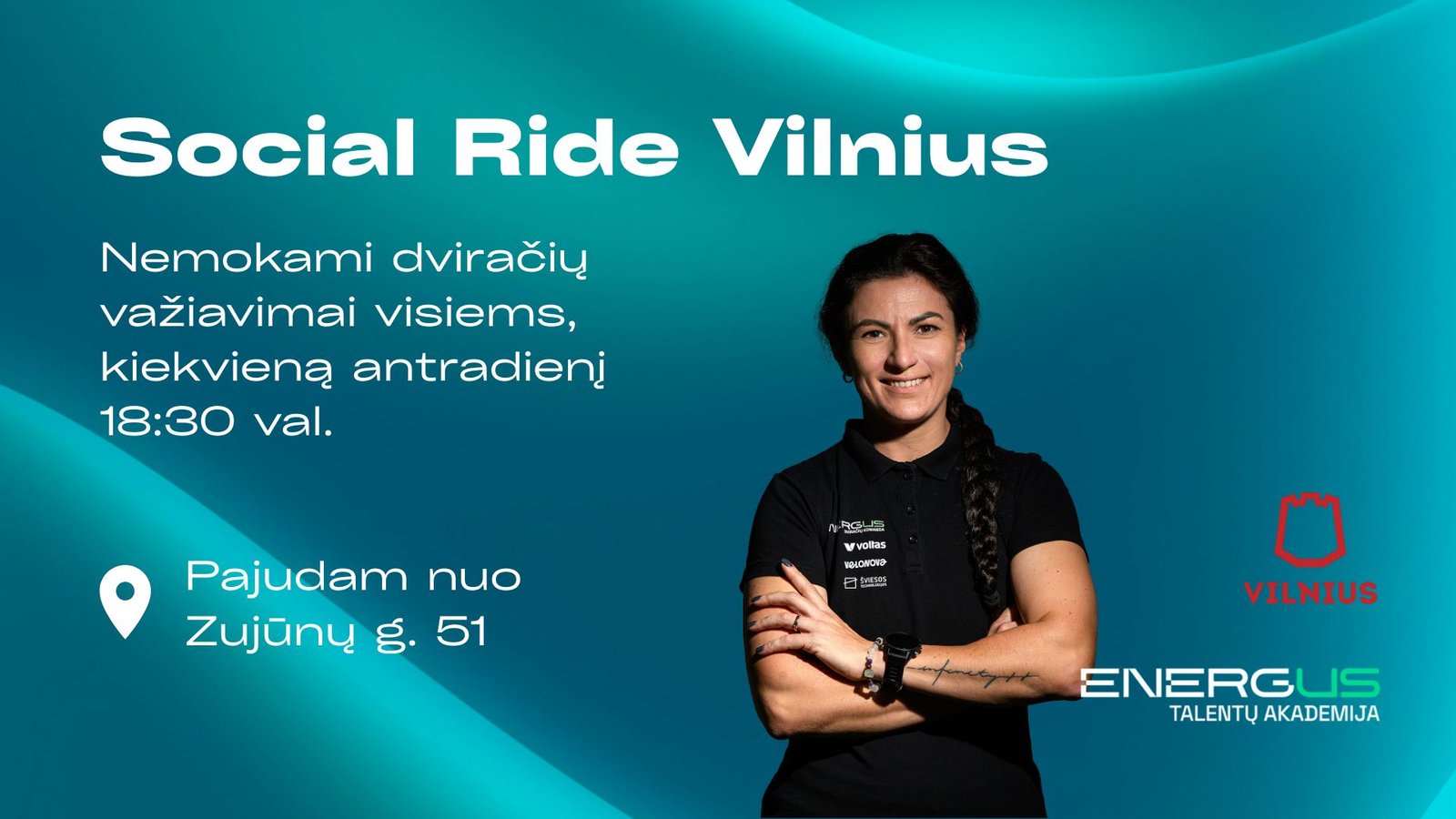 Kviečiame kiekvieną antradienį 18:30 susitikti Zujūnų g. 51 ir kartu leistis į NEMOKAMUS dviračių važiavimus po miestą. Tai puiki galimybė aktyviai praleisti laiką, geriau pažinti Vilnių ir prisijungti prie bendraminčių bendruomenės. Važiavimai vyks iki rugsėjo 22 dienos.