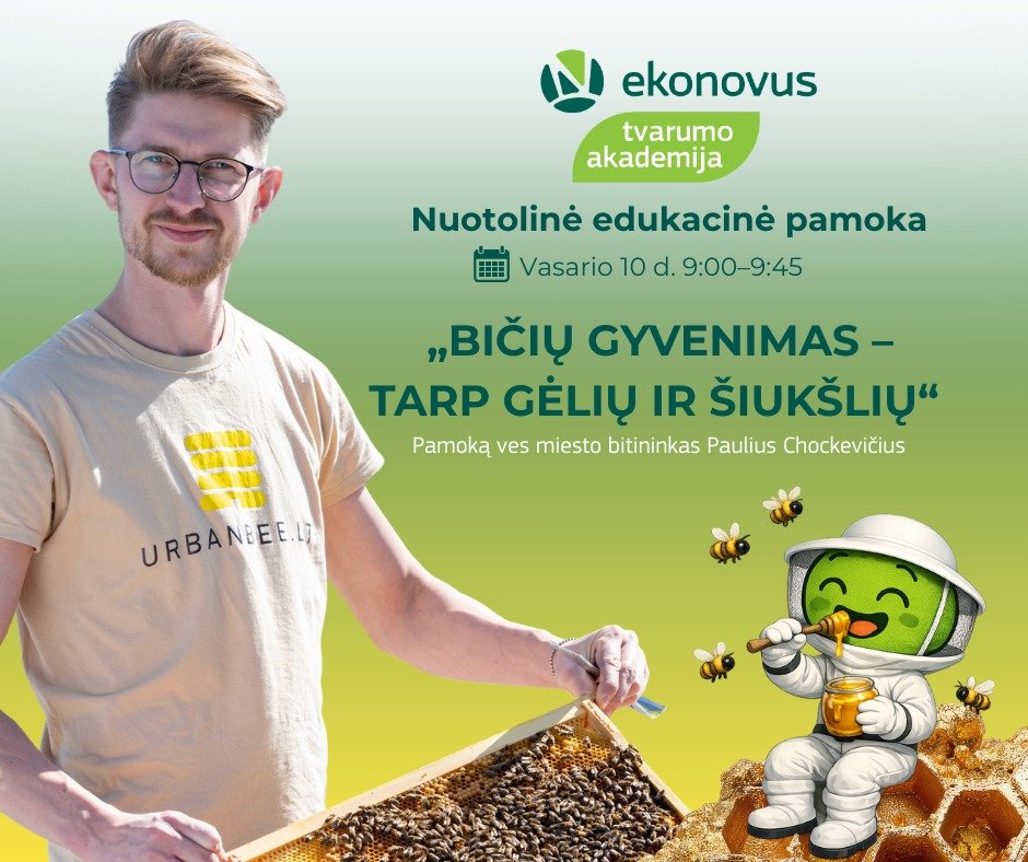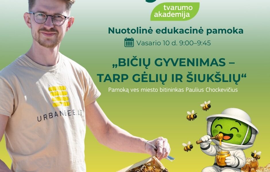 Jau vasario 10 d. kviečiame į „Tvarumo akademijos“ nuotolinę edukacinę pamoką – 🐝 „Bičių gyvenimas – tarp gėlių ir šiukšlių“