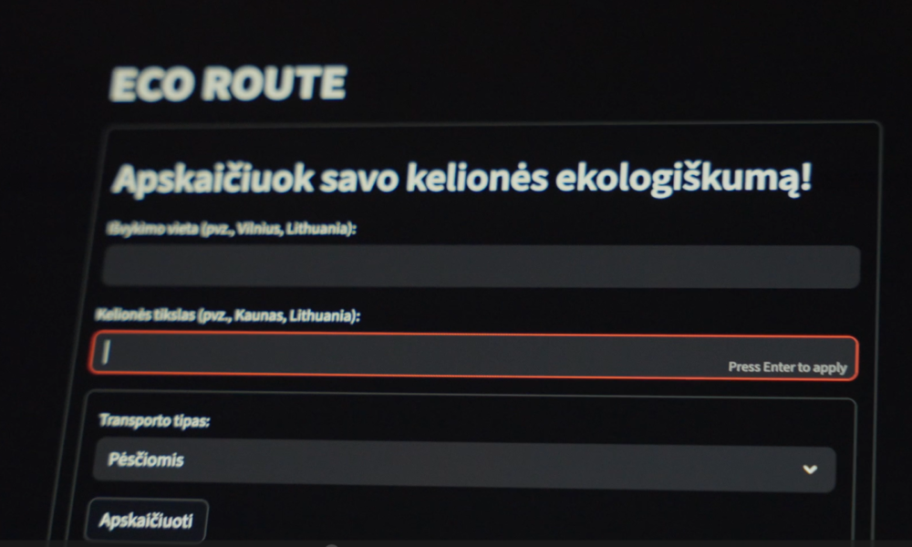 ECO ROUTE - tai mūsų sukurta svetainė, kuri padeda nustatyti ekologinį pėdsaką, susijusį su transporto naudojimu.