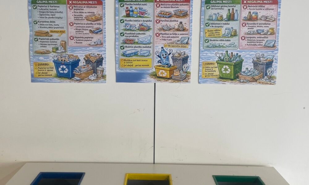 Sukūrėme žaidimą apie atliekų rūšiavimą ir įrengėme rūšiavimo dėžes mokykloje, kad skatintume atsakingą elgesį.