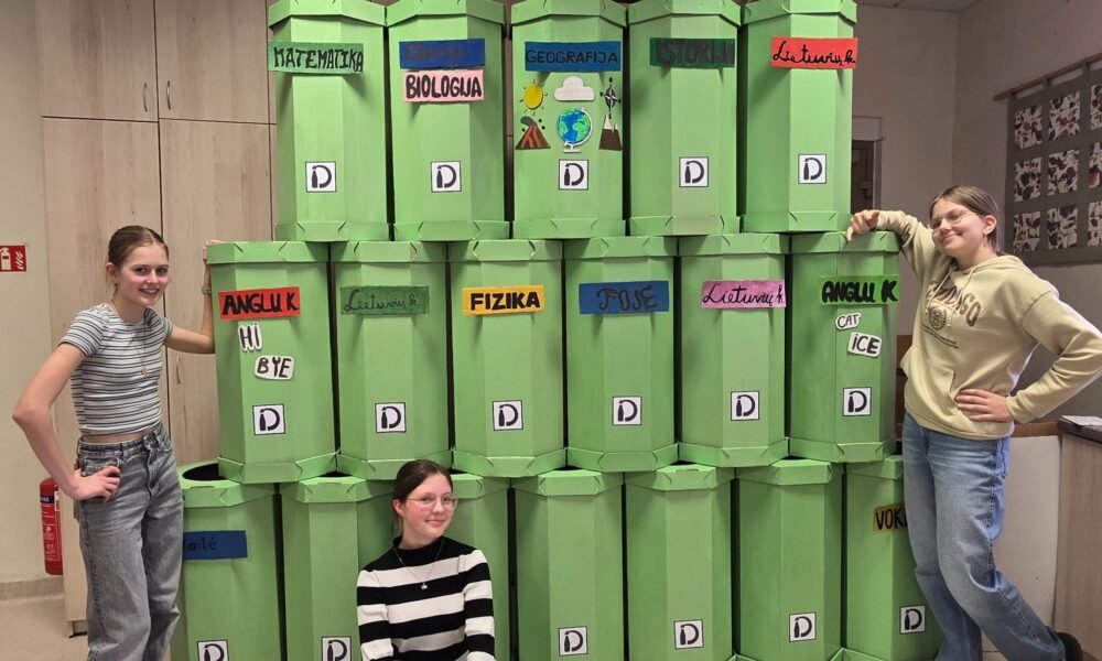 Vilniaus Trakų Vokės gimnazijos mokiniai lankstė ir kabinetuose įrengė dėžutes depozitiniams buteliams, skatindami rūšiavimą.
